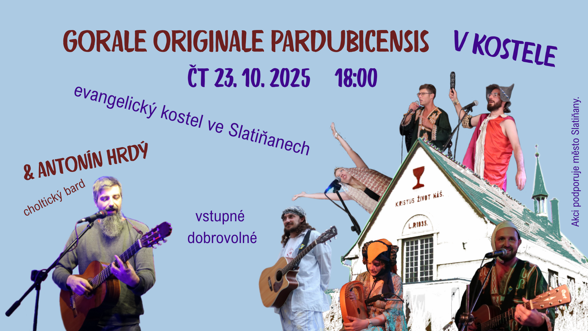 Ve čtvrtek 23. října 2025 od 18:00 vystoupí v evangelickém kostele ve Slatiňanech kapela Gorale Originale Pardubicensis – parta, která spojuje folkovou energii, divadelní nadhled a poctivou radost z hraní.