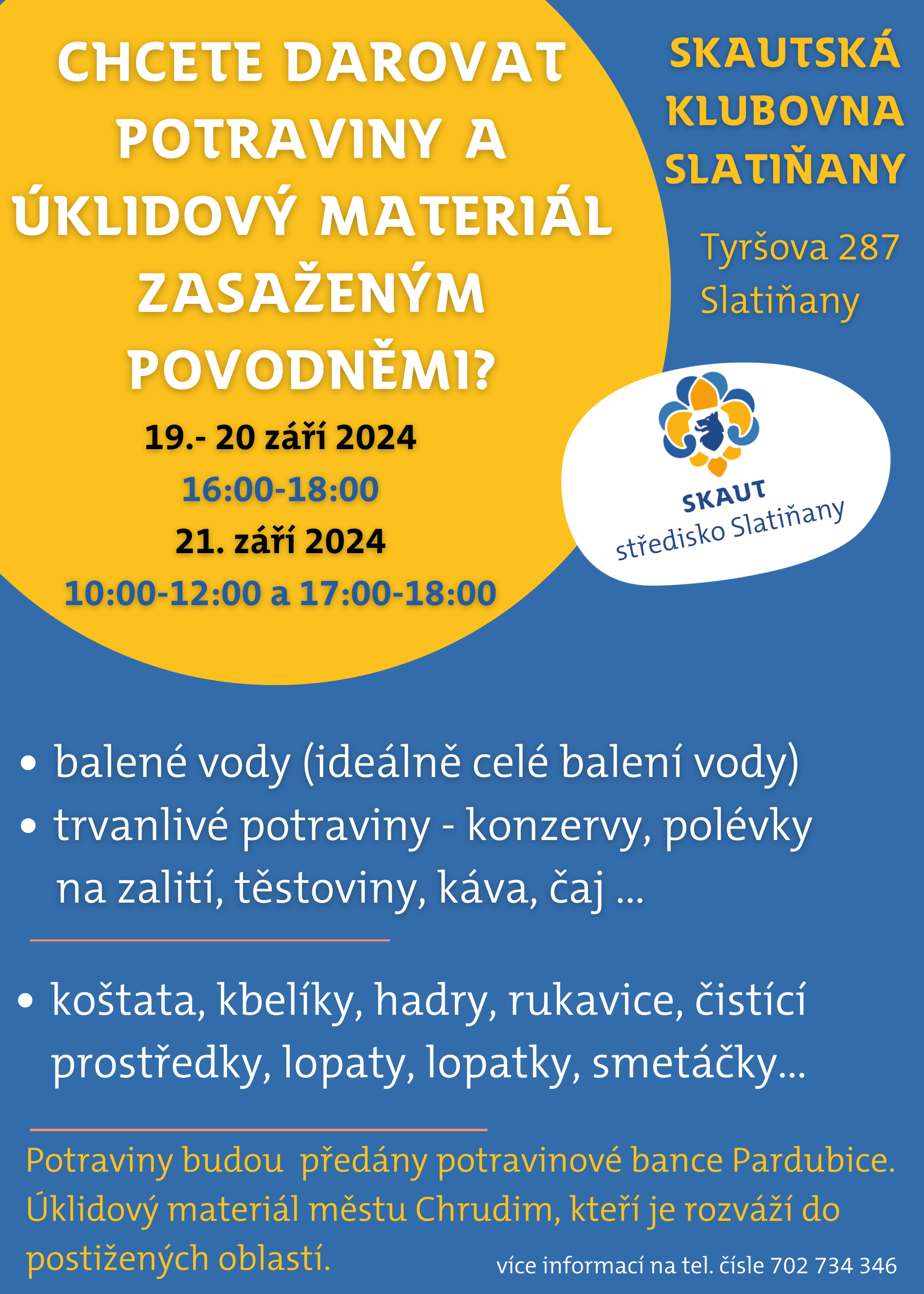 Místo: Skautská klubovna Slatiňany, Tyršova 287, Slatiňany